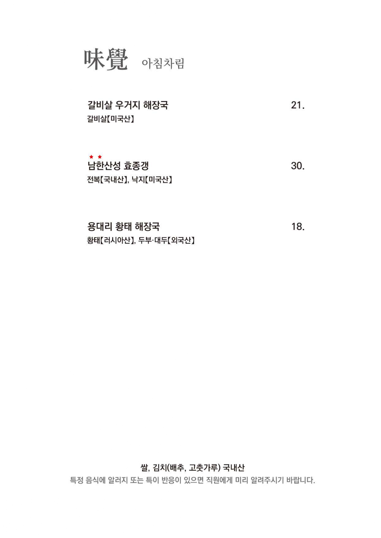 식음료 메뉴 안내